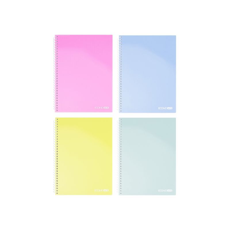 Блокнот А4, пластиковая обложка (фактура глянец), бічна спіраль, 80 арк., клітинка, асорті пастел