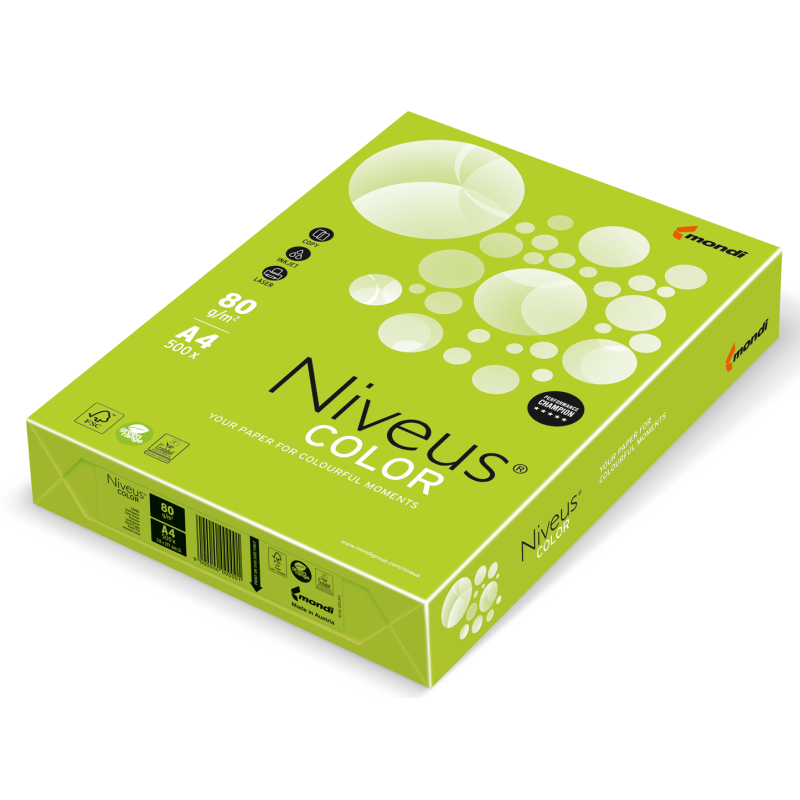 Вы любите яркие и живые цвета? Живите красочными моментами и делитесь ими используя бумагу Niveus® COLOR. Niveus® COLOR фиксирует ваши эмоциональные моменты, яркие впечатления, помогает организовывать ваши ежедневные офисные задачи. Вы можете выбрать из более чем 30 цветов. От бледных пастелей и ярких цветовых оттенков до веселых неонов. Пусть ваши идеи сияют во всех оттенках жизни!