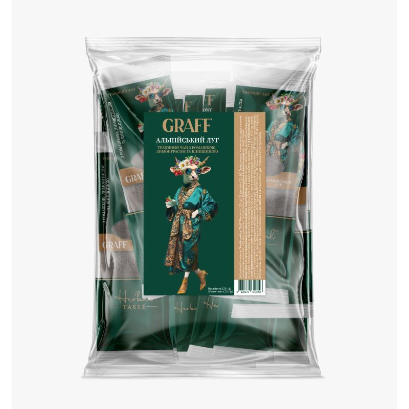 Чай травяной «Alpine Meadow/Альпийский луг» Graff в пакетиках (кадди) Травяной чай с ромашкой, лимонграссом и шиповником. Ароматный, мягкий и сбалансированный – для уюта и естественной гармонии.
