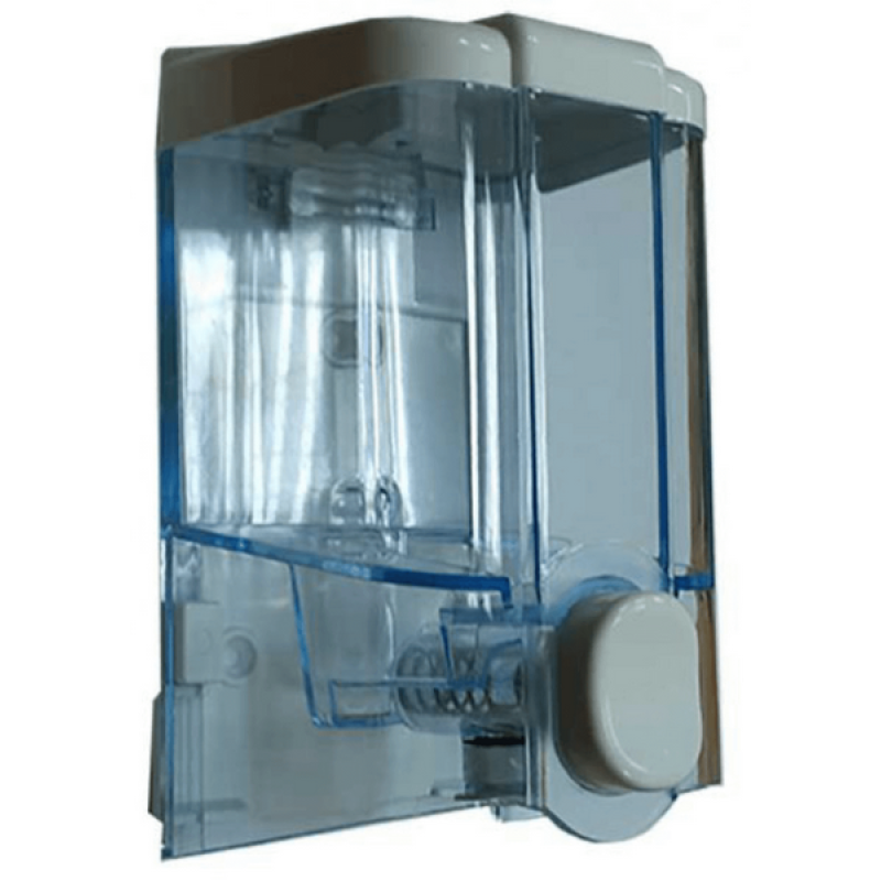 Дозатор жидкого мыла настенный (подвесной). Дозатор предназначен для работы с жидким мылом любой вязкости. Корпус - пластик. Тип дозатора - кнопочный, наливной. Размер: 90х90х160 (h) мм. Объем - 0.5 (l) л. Дозатор для жидкого мыла, сделан из высококачественной прозрачной пластмассы. Внизу корпуса находится надежная и удобная кнопка, которая дает возможность экономичной подачи мыла. Его компактная форма позволяет его устанавливать не только в заведенных с большой проходимостью людей, но и дома. Корпус прозрачный, что дает возможность контроля за уровнем мыла. Крепится к стене на саморезы или дюбеля( крепления входят в его комплектацию). Конструкция сделана так, что дает возможность легкой очистки и мытья емкости.