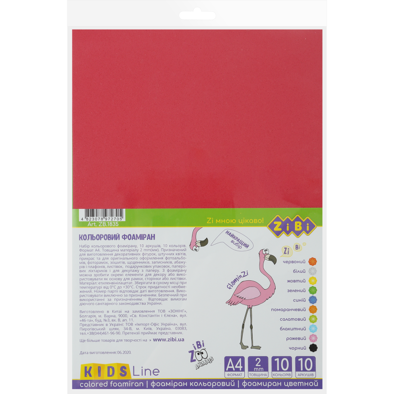 Состав набора: 10 листов, 10 разных цветов (синий, зеленый, желтый, красный, белый, оранжевый, салатовый, голубой, розовый, черный)