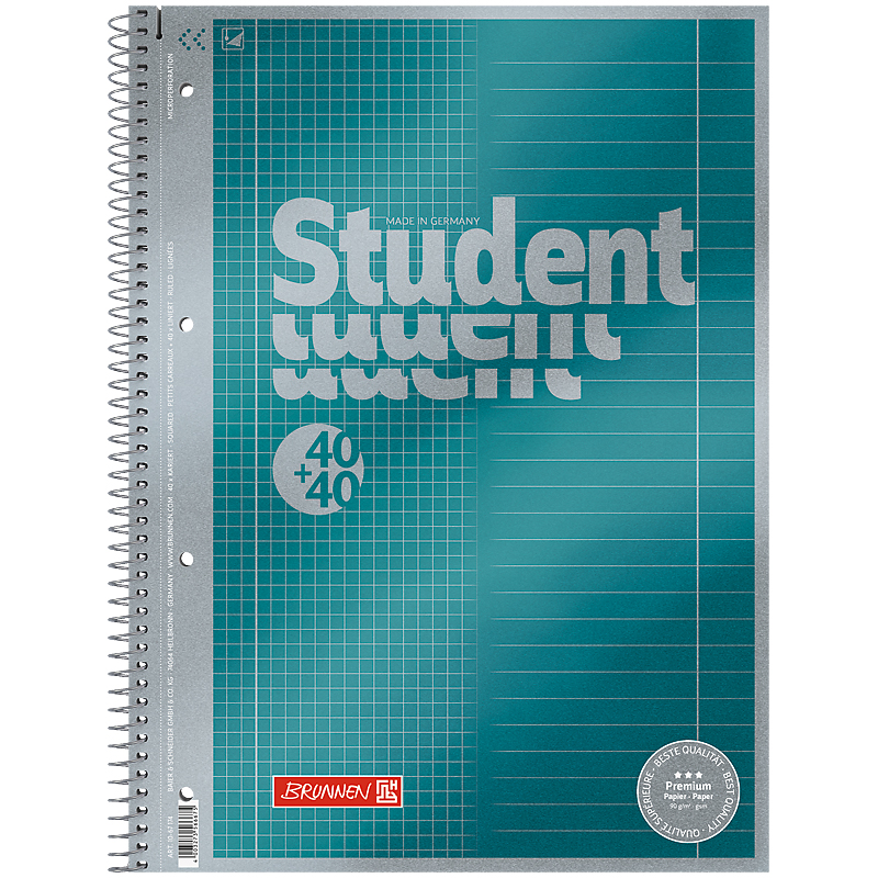 Колледж-блок BRUNNEN Premium А5 формата на спирали изготовлен из европейской высококачественной белой бумаги 90 г/м2. Имеет 40 листов в клетку и 40 листов в линейку, что делает его универсальным помощником для записей. Бумага устойчива к чернилам. Страницы с микроперфорацией для легкого отрывания. Дополнительная перфорация на 6 отверстий для крепления в папках. Лаконичный дизайн обложки в одном цвете. Характеристики: • Количество листов: 80. • Плотность: 90 г/м2. • Перфорация: 6 отверстий. • Линовка: клетка и линейка. • Цвет: голубой металлик