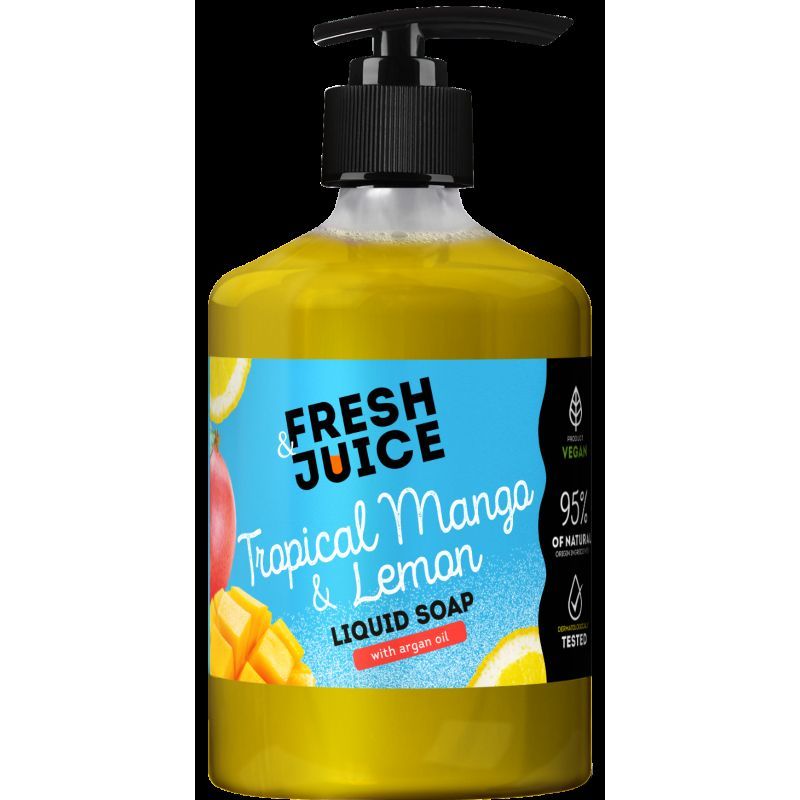 Ароматне рідке мило Тропічне манго та Лимон дбайливо очищує шкіру. Містить живильну олію аргани для ніжного догляду. Веганський продукт. Дерматологічно тестовано. AQUA, SODIUM LAURETH SULFATE, SODIUM CHLORIDE, BEHENAMIDOPROPYL DIMETHYLAMINE, CITRUS LIMON FRUIT EXTRACT, MANGIFERA INDICA FRUIT EXTRACT, MANGIFERA INDICA SEED BUTTER, ARGANIA SPINOSA KERNEL OIL, COCO-GLUCOSIDE, HYDROGENATED CASTOR OIL, GLYCOL DISTEARATE, COCAMIDOPROPYL BETAINE, GLYCERYL OLEATE, PEG-7 GLYCERYL COCOATE, CITRIC ACID, PARFUM, SODIUM BENZOATE, BENZOIC ACID, PROPYLENE GLYCOL, DISODIUM EDTA, CITRUS AURANTIUM PEEL OIL, LIMONENE, СI 19140, СI 15985