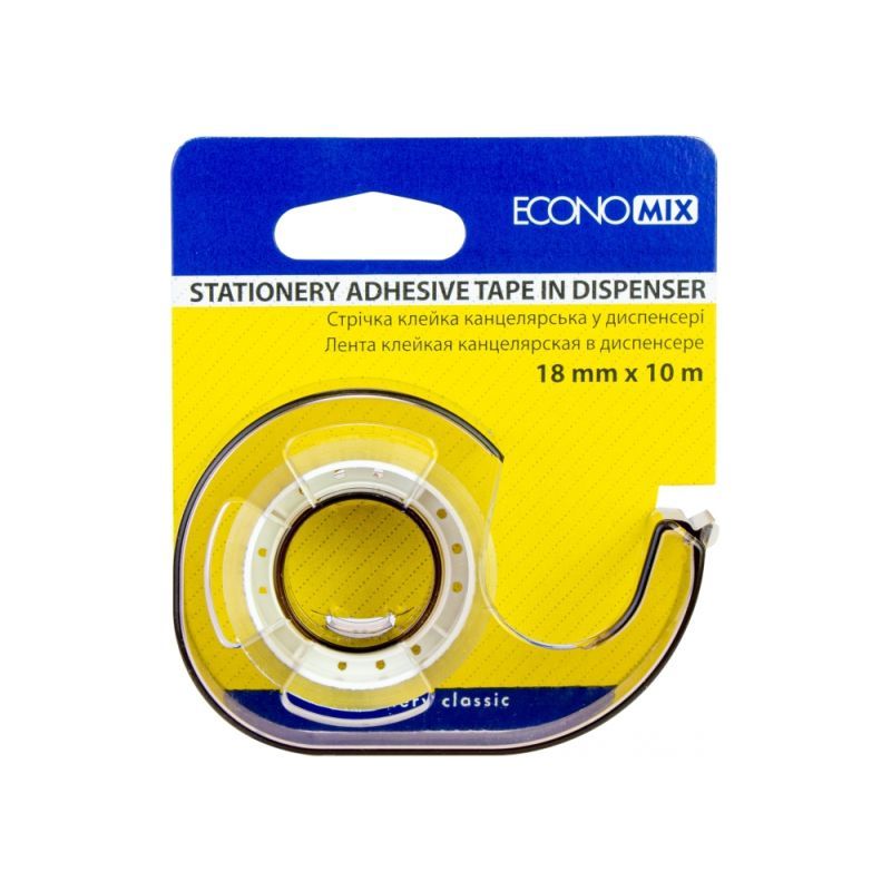 Лента клейкая канцелярская в диспенсере прозрачная 18мм * 10м Economix. Диспенчер изготовлен из качественного пластика. Благодаря встроенному лезвию обеспечивает комфортное использование и компактное хранение ленты.