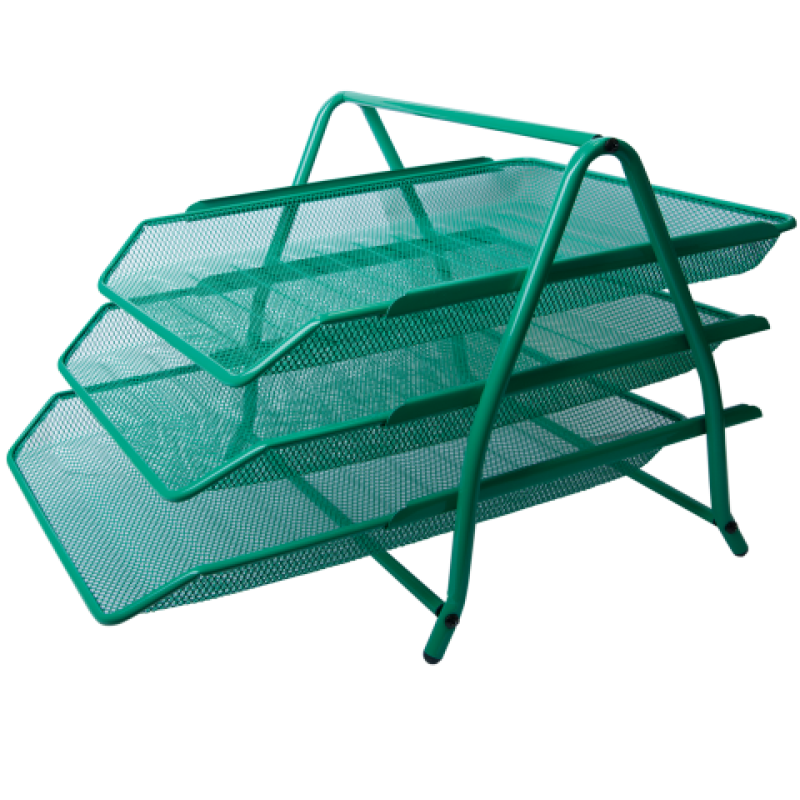 Лоток изготовлен из металлической сетки, состоит из трех элементов и имеет открытую скошенную переднюю часть, что позволяет извлекать необходимые документы быстро и легко.