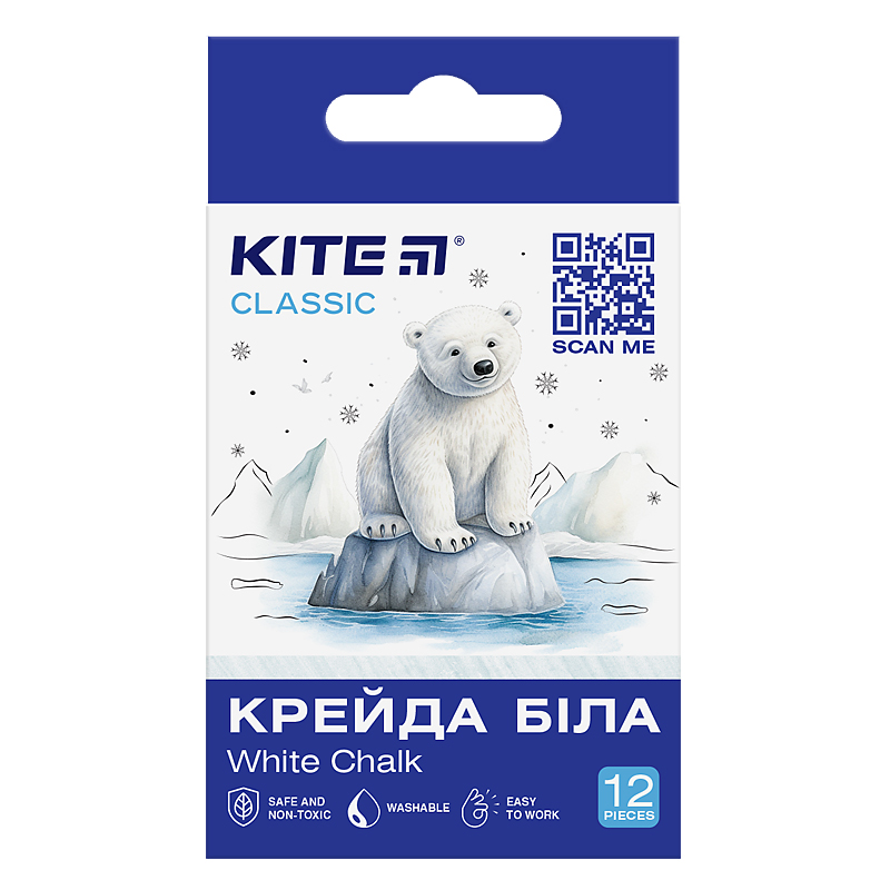 Мел белый Kite Classic круглый, диаметр 9 мм, висота 80 мм, картонная упаковка, набор 12 штук.