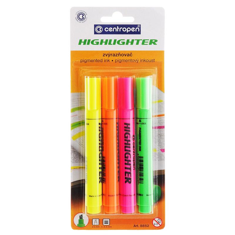 Маркер для плавного и легкого выделения текста на всех видах бумаги. Текстовыделитель с повышенным объемом чернил и со специальным супергибким наконечником. Не высыхает без колпачка в течение 5 дней. Светостойкие чернила на водной основе, насыщенные цвета. След не передаётся по факсу, не просачивается сквозь бумагу. Не размазывает текст, распечатанный на струйном принтере. Не высыхает без колпачка в течение 5 дней. Клиновидный пишущий узел. Ширина следа 1-4,6 мм. Пишущий узел выдерживает большую нагрузку без деформации.