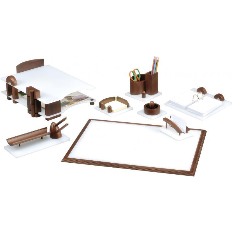 Рабочий стол – это маленький офис, в котором должно быть все необходимое. Предметы должны быть грамотно расставлены по местам, чтобы в любой момент их можно было найти, и выглядеть стол должен солидно и презентабельно. Именно поэтому на столе должен быть специальный настольный набор - функциональный и стильный.