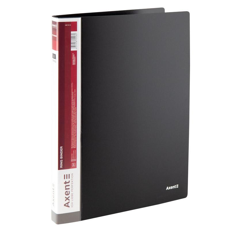 Папка на 2-х кольцах Axent 1207-01-A формата А4. Ширина корешка: 25 мм. Вместимость: до 110 листов. Толщина пластика: 700 мкм. Внутренний прозрачный карман. Цвет: черный. Полипропилен (РР). Отгрузка: каждый цвет отдельно