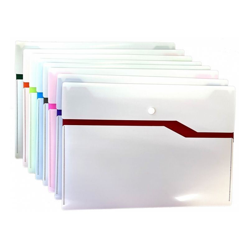 Удобная стильная папка на кнопке на 2 отделения выполнена в 8 цветах (белая обложка и цветная вставка внутри). Плотность 300мкм. Shelf-ready гофроупаковка с отрывной перфорацией, позволяющая размещать товар сразу в ящике на полках.