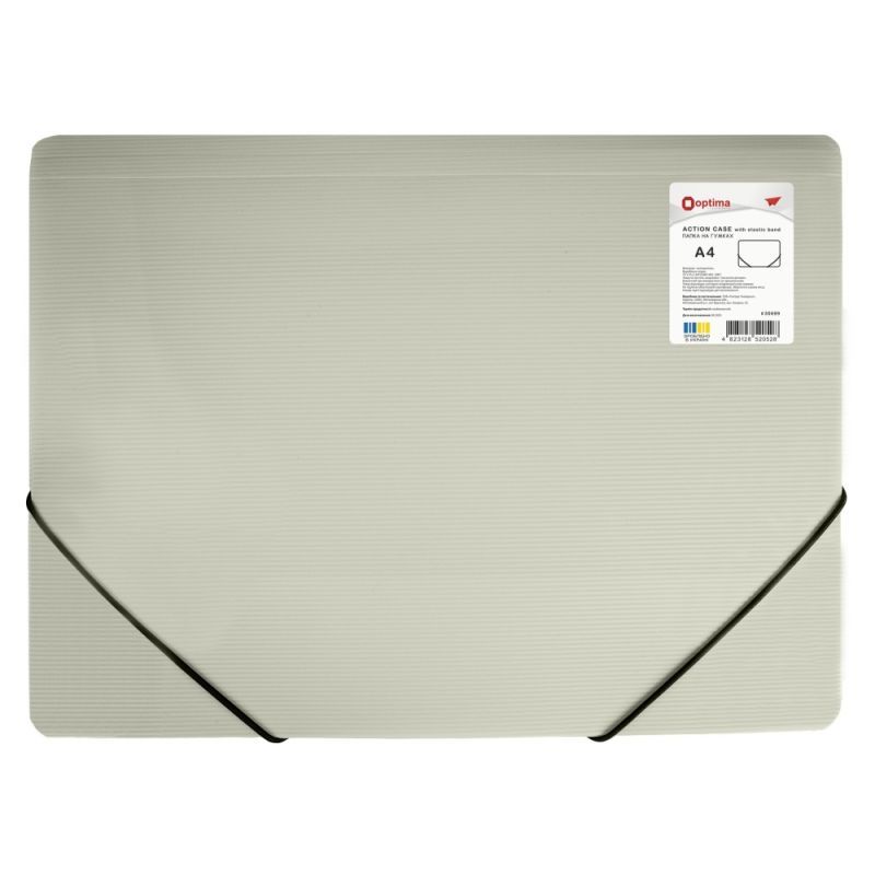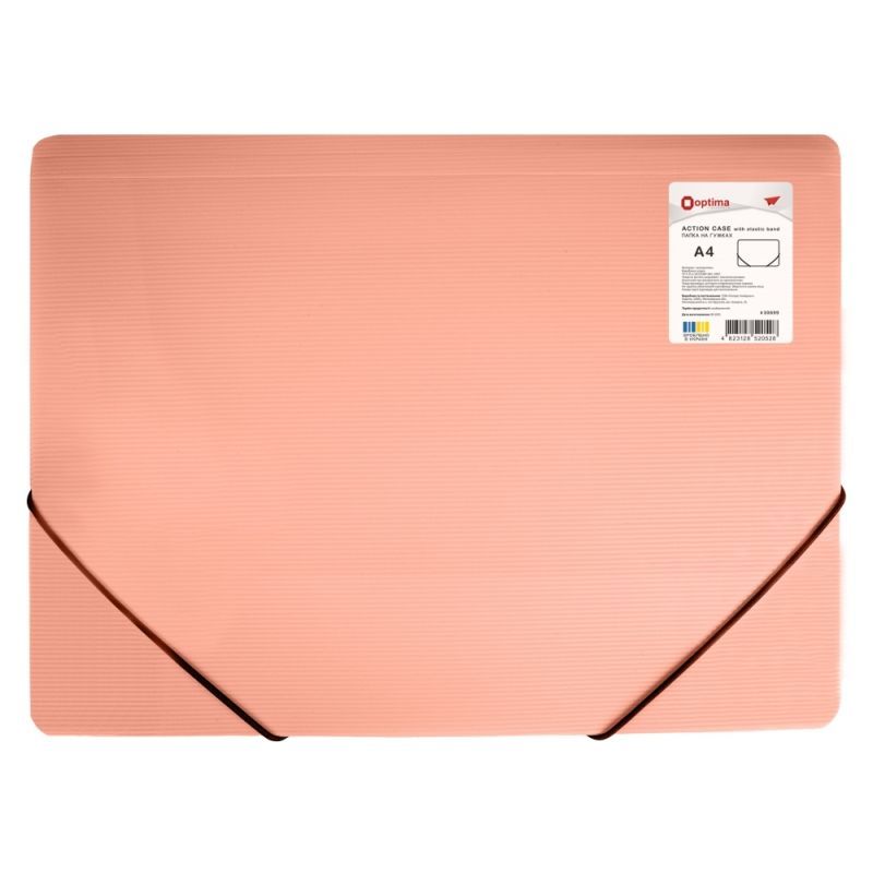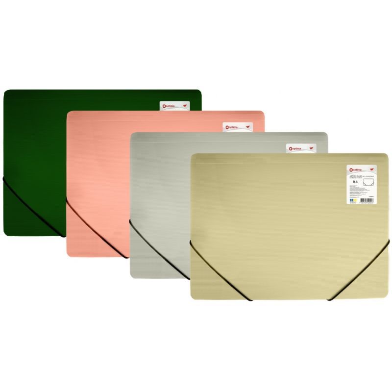 Папка на гумках, А4, OPTIMA, 500 мкм, фактура "СМУГА", кольори - кораловий, какао, хакі, сірий.