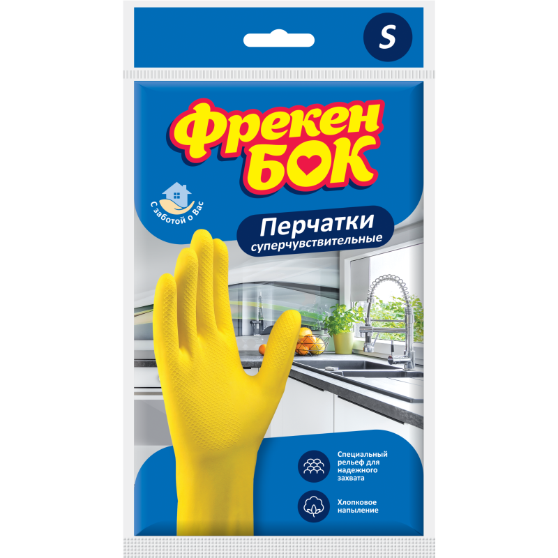 Универсальные хозяйственные перчатки с дополнительной защитой для рук. Перчатки ТМ Фрекен БОК с внутренним хлопковым напылением произведены из высококачественного натурального латекса. Высокая плотность перчаток позволяет выполнить различные хозяйственные работы, обеспечивая максимальную защиту и комфорт. В состав внутреннего напыления входят экстракты алоэ и ванили, которые увлажняют руки, защищают их от раздражений и обладают антисептическим эффектом. Перчатки имеют приятный аромат ванили. Преимущества: суперпрочные, долговечные, антисептические, 100 % натуральный латекс, 100 % натуральное хлопковое напыление, увлажняющие, плотный охват руки, аромат ванили. Использование: мытьё посуды, хозяйственные работы, работа в саду, мойка автомобилей, ремонтные работы. Перчатки ТМ Фрекен БОК произведены в соответствии с мировым стандартом качества ISO 9001 на современном оборудовании.