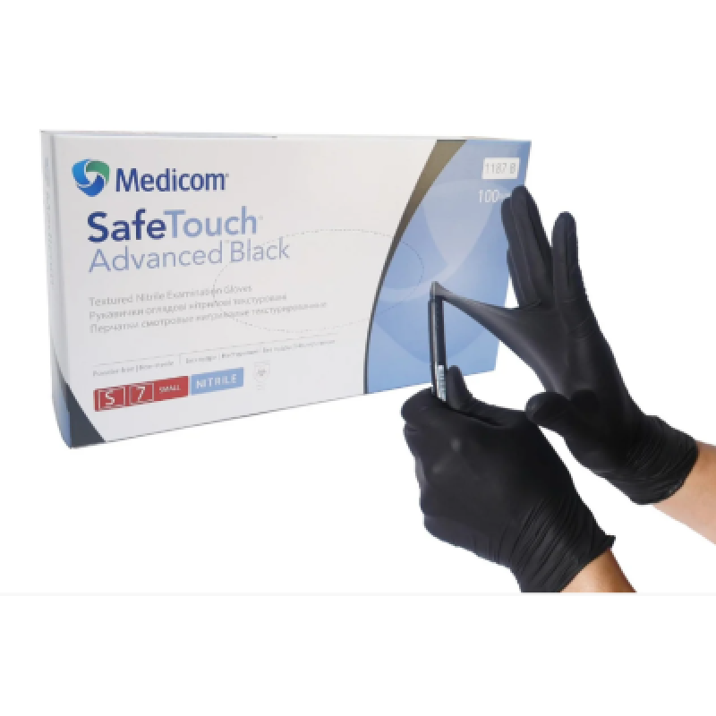 Перчатки нитриловые в боксе М 100 шт, плотные, черные