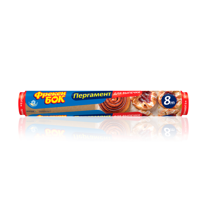 Пергамент ТМ Фрекен БОК предназначен для выпечки, приготовления пищи, упаковки и хранения пищевых продуктов. Подходит для выпечки в газовых и электрических духовых шкафах при температуре до 220°С.