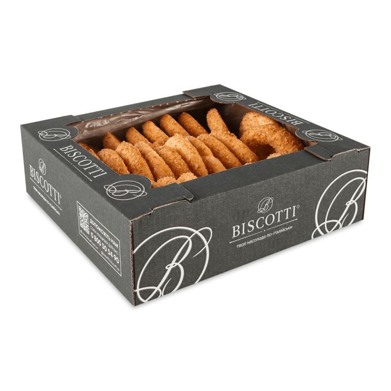 Легендарний топ-продажів BISCOTTI та найулюбленіше печиво всіх, хто його спробує вперше. Коли ніжна стружка кокоса й неймовірне здобне печиво зустрічаються разом, народжується цей незрівнянний смак і безмежна насолода по-італійськи!