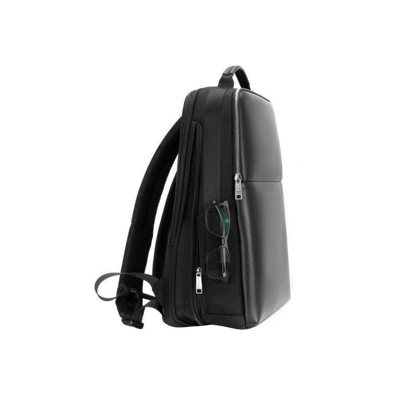 Размер: 43*29*15 см. жесткий каркас; материал: нейлон с микрофиброй, кожа; 1 отделение: Laptop, органайзер и карман на молнии; 1 карман на фасаде; 1 боковой карман с расширением на молнии; анатомическая спинка с мягкими вставками и потайным карманом на молнии; эргономичные S-образные регулируемые лямки, укрепленная ручка; металлическая фурнитура, двойные застежки; двухцветная индивидуализация бегунков; расширение объема рюкзака дополнительными молниями; ремень для крепления на чемодан для путешествий; встроенный USB порт.