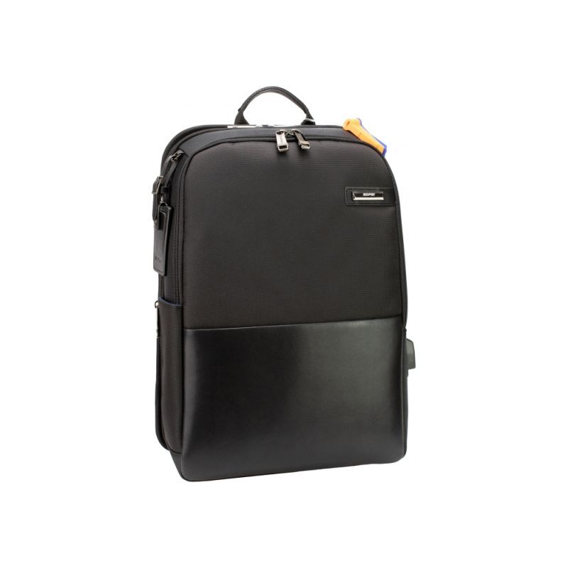 Размер: 44*31*15 см. жесткий каркас; материал: нейлон с микрофиброй, кожа; 2 отделения: первое - карман и органайзер, второе - Slim, 2 Laptop-кармана, карман-сетка; 1 боковой карман с расширением на молнии; отделение на дне с дождевиком для рюкзака; анатомическая спинка с мягкими вставками и потайным карманом на молнии; эргономичные S-образные регулируемые лямки, укрепленная ручка; металлическая фурнитура, двойные застежки; двухцветная индивидуализация бегунков; расширение объема рюкзака дополнительными молниями; ремень для крепления на чемодан для путешествия; брелок-бейдж с окошком для визитки; встроенный USB порт.