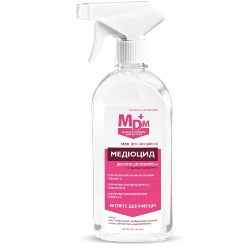 Медиоцид – эффективное средство для быстрой и качественной обработки различных поверхностей и рабочих инструментов. Медиоцид поставляется в виде готового к использованию раствора. Имеет спиртовую основу, относится к быстродействующим препаратам, быстро высыхает и имеет время экспозиции до 1 мин. Это позволяет сократить до минимума время на дезинфекцию небольших помещений и инструментов. Обработка производится либо распылением препарата на обрабатываемую поверхность, либо протиранием смоченой в растворе влажной салфеткой. Наличие пульверизатора поможет вам лучше контролировать расход дезинфектора и позволяет легко обработать даже самые труднодоступные места.