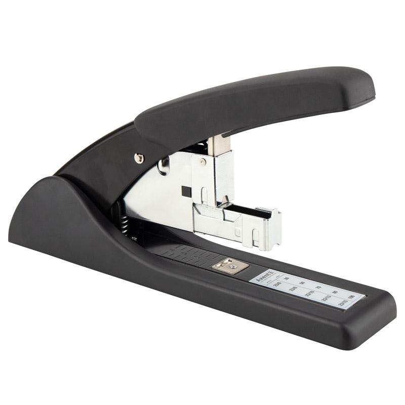 Axent ExaktPro - мощный степлер, предназначенный для настольного скрепления листов бумаги. Рычаг и все рабочие механизмы сделаны из металла, устойчивы даже к интенсивным нагрузкам. Прорезиненная рукоятка препятствует скольжению руки в процессе работы. Удобен в использовании - надежный механизм подачи скоб из прочного металла обеспечивает легкую подачу скоб в рабочую зону, скрепление без осечек. Степлер имеет кнопочный механизм подачи контейнера для загрузки скоб.