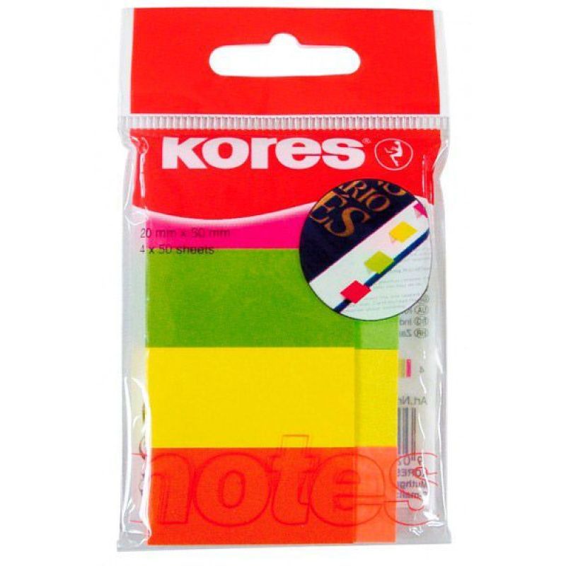 Стикеры-закладки бумажные 20х50 4цв.*50л. неон. Kores