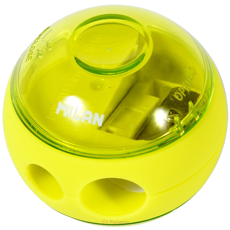 Точилка в форме сферы с вместительным контейнером для стружки и с 2 отверстиями для заточки графитных и цветных карандашей разного диаметра: стандартного диаметра (до 8 мм) и большого диаметра JUMBO (до 11 мм).