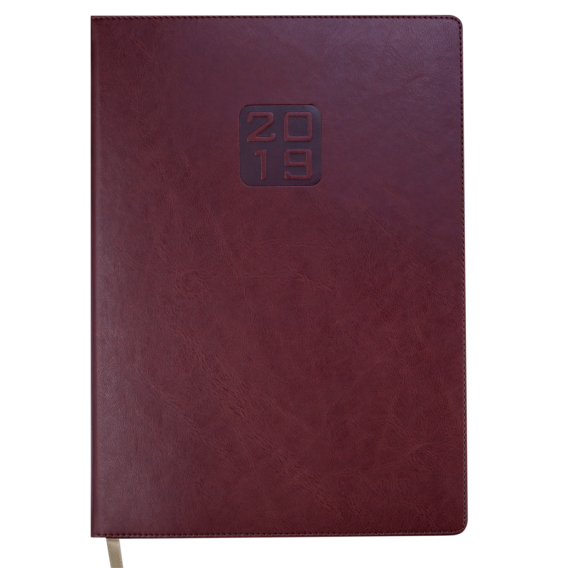 Внутренний блок: офсет белого цвета плотностью 70 г/м² Печать блока в 2 цвета: серый и бордовый Два языка: украинский и русский Календарь: в датированных – на 2018-2021 гг. Планинг на 2020 год Организатор времени с 7:00 до 21:00 Лист для внесения личных данных Суббота и воскресенье – вертикальное расположение на одной странице Алфавитная книга Перечень государственных, профессиональных и православных праздников Таблица расстояний между областными центрами Украины Телефонные коды городов стран СНГ Международные знаки соответствия Справочник систем измерения Страница для внесения памятных дат Карта Украины и мира на форзацах Цветное ляссе