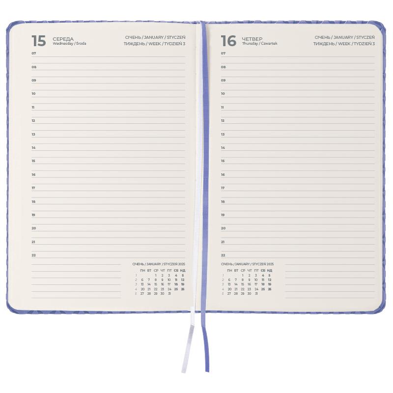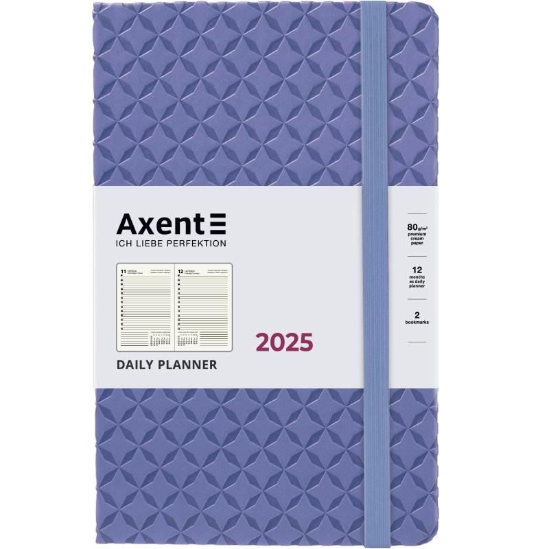 Удобный ежедневник Axent из серии Partner Gently в твердой обложке. Используется для каждодневных записей, а также деловых и творческих задач. Твердая обложка помогает сохранить аккуратный и презентабельный вид на протяжении долгого времени. Качественная кремовая бумага плотностью 80 г/м2 хорошо впитывает чернила и обеспечивает комфортное письмо. Удобно делать записи, чертить и рисовать. Ежедневник имеет датированный блок в линию на каждый день. Внутренний блок на украинском языке. Блокнот содержит календарь на 2025-2026 год, общее расписание недели, поля для записи любимых книг, трекер полезных привычек, информацию о праздниках, важных телефонных номерах, часовых поясах стран мира, единицах измерения, шкале температур. Две разноцветные закладки-ляссе позволяют быстро найти и открыть нужные страницы. Содержит 184 листов, размер - 145*210 мм.