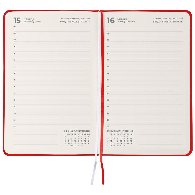 Удобный ежедневник Axent из серии Partner Strong в твердой обложке. Используется для каждодневных записей, а также деловых и творческих задач. Твердая обложка помогает сохранить аккуратный и презентабельный вид на протяжении долгого времени. Качественная кремовая бумага плотностью 80 г/м2 хорошо впитывает чернила и обеспечивает комфортное письмо. Удобно делать записи, чертить и рисовать. Ежедневник имеет датированный блок в линию на каждый день. Внутренний блок на украинском языке. Блокнот содержит календарь на 2025-2026 год, общее расписание недели, поля для записи любимых книг, трекер полезных привычек, информацию о праздниках, важных телефонных номерах, часовых поясах стран мира, единицах измерения, шкале температур. Две разноцветные закладки-ляссе позволяют быстро найти и открыть нужные страницы. Содержит 184 листов, размер - 145*210 мм.