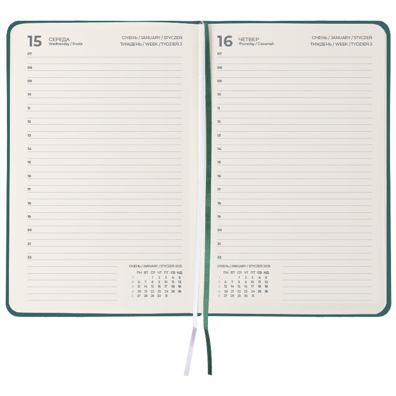 Удобный ежедневник Axent из серии Partner Strong в твердой обложке. Используется для каждодневных записей, а также деловых и творческих задач. Твердая обложка помогает сохранить аккуратный и презентабельный вид на протяжении долгого времени. Качественная кремовая бумага плотностью 80 г/м2 хорошо впитывает чернила и обеспечивает комфортное письмо. Удобно делать записи, чертить и рисовать. Ежедневник имеет датированный блок в линию на каждый день. Внутренний блок на украинском языке. Блокнот содержит календарь на 2025-2026 год, общее расписание недели, поля для записи любимых книг, трекер полезных привычек, информацию о праздниках, важных телефонных номерах, часовых поясах стран мира, единицах измерения, шкале температур. Две разноцветные закладки-ляссе позволяют быстро найти и открыть нужные страницы. Содержит 184 листов, размер - 145*210 мм.