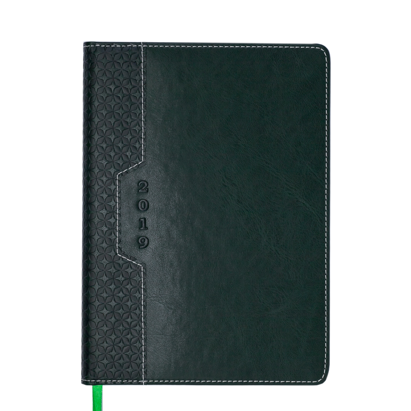 Внутренний блок: офсет белого цвета плотностью 70 г/м² Печать блока в 2 цвета: серый и бордовый Два языка: украинский и русский Календарь: в датированных – на 2018-2021 гг. Планинг на 2021 год Организатор времени с 7:00 до 21:00 Лист для внесения личных данных Суббота и воскресенье – вертикальное расположение на одной странице Алфавитная книга Перечень государственных, профессиональных и православных праздников Таблица расстояний между областными центрами Украины Телефонные коды городов стран СНГ Международные знаки соответствия Справочник систем измерения Страница для внесения памятных дат Карта Украины и мира на форзацах Цветное ляссе