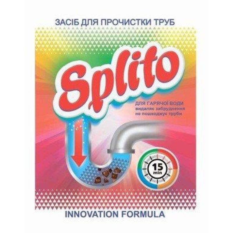 Засоби швидко прочищають забруднені труби. Видаляють бактеріальний слиз, жир, волосся, залишки їжі, мікроби та неприємні запахи. Не пошкоджують пластикові труби. Достатньо одного пакетика для прочистки побутової труби. Вага 70г