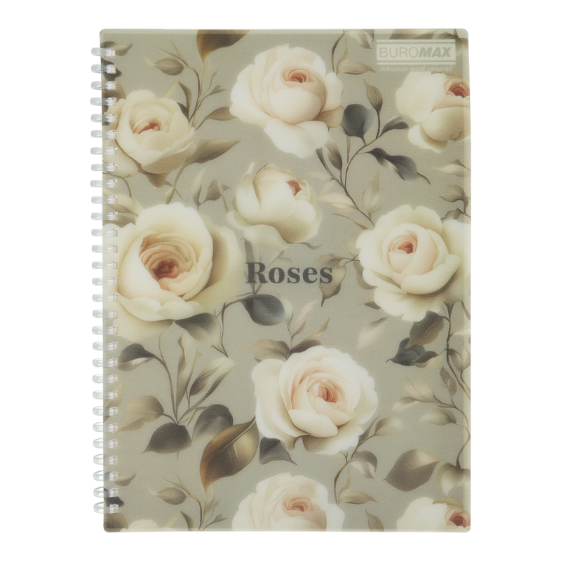Формат В5 (розмір 190х260 мм). Обкладинка із щільного матового непрозорого пластику (товщина 600 мкм) - чудово захистить вміст зошита від заминання, намокання та інших механічних пошкоджень чи забруднень;кріплення аркушів: силиконовая вертикальна пружина (збоку), що дозволяє легко перегортати та загинати сторінки (все лягає ідеально), а також зручно писати на обох сторінках розвороту. Внутрішній блок: кремовий офсетний папір щільністю 70 г/м²;лінування: клітинка, виконане сірим кольором, оптимальним для сприйняття зором людини.